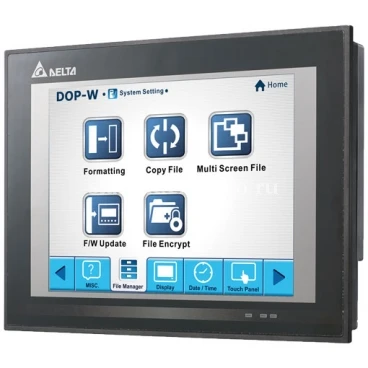 Серия DOP-W представляет собой панели оператора с большим размером сенсорного экрана - 10.4”, 12” или 15” - и обладают высоким разрешением и повышенной яркостью. С процессором последнего поколения Cortex-A8, обладающим тактовой частотой 1 ГГц, панели серии DOP-W обеспечивают высокую производительность и малое время отклика. Прочный алюминиевый корпус обладает высокой виброустойчивостью и повышенной защитой от колебаний температуры внешней среды, что в сочетании с водонепроницаемой защитой передней панели позволяет эксплуатировать сенсорные панели оператора DOP-W в жестких условиях. Встроенные динамики увеличивают возможности применения данных панелей. Сенсорные терминалы серии DOP-W имеют сертификаты по стандартам CE и UL и представляют собой конкурентоспособное, выгодное решение для визуализации и управления в различных задачах широкого спектра промышленных и бытовых применений, в т.ч. в системе «умный дом».