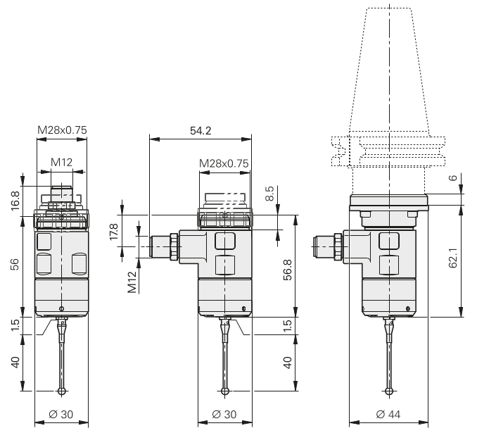 | Крепление | конический хвостовик (круглый фланец) М28 х 0,75 наружная резьба муфта М22 х 1 наружная резьба |